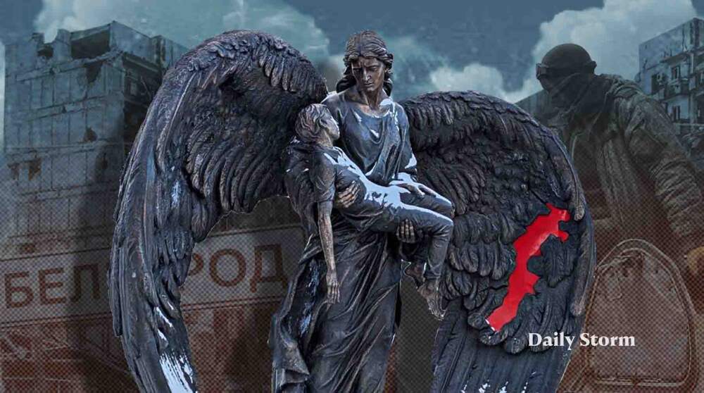 Статуя раненого ангела заняла место стихийного мемориала, где скорбели о детях и взрослых, убитых 30 декабря 2023 годаВ Белгороде установили мемориал в память о местных жителях, погибших от атак ВСУ. Статую в виде раненого ангела с ребенком в руках открыли в годовщину одного из самых смертоносных