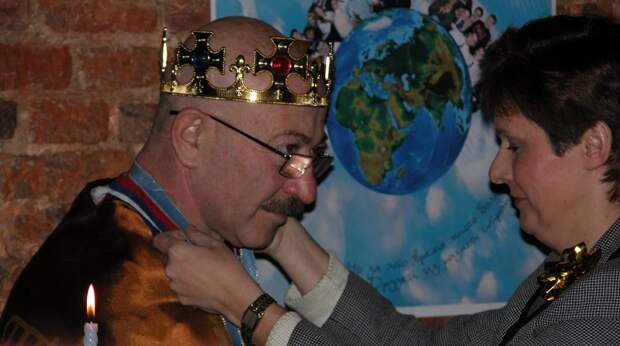 Вот, смотрите, на этих фото тоже наши фраеровки. Мы надеваем на голову Розенбауму корону, а он преклоняет колено, и видно, что он получает от этого массу позитива. Но постепенно эту инициативу задушили, а задушила его продюсер.
