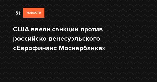 Минфин США ввел санкции в отношении «Еврофинанс Моснарбанка» из-за связи с нефтяной венесуэльской госкомпанией PDVSA. Об этом говорится на сайте ведомства. В числе акционеров «Еврофинанс Моснарбанка» — венесуэльский госфонд, ВТБ и Газпромбанк.