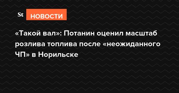 Глава «Норникеля» Владимир Потанин назвал масштабный разлив дизельного топлива на подконтрольной предприятию тепловой электростанции под Норильском «неожиданным ЧП». Бизнесмен предположил, что причиной столь крупной аварии стало внезапное проседание свай из-за изменений в вечной мерзлоте, поэтому ЧП было «сложно предвидеть и предугадать».
