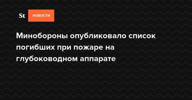 Минобороны России обнародовало список моряков, погибших при пожаре 1 июля на глубоководном научно-исследовательском аппарате. Их имена с фотографиями опубликованы на сайте военного ведомства. Среди погибших — семь капитанов 1 ранга. В министерстве отметили, что эти моряки неоднократно «принимали участие в сложнейших подводных экспедициях по исследованию Арктики c погружением на предельные глубины».