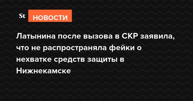 Журналист Юлия Латынина после начала проверки правоохранителями в отношении ее слов о нехватке средств защиты (СИЗ) у медиков в Татарстане, заявила, что не имела в виду город Нижнекамск. Ранее стало известно, что Следственный комитет (СКР) начал проверку эфира радиостанции «Эхо Москвы», в котором Латынина зачитала письмо медиков из одного из городов Татарстана о нехватке СИЗ.