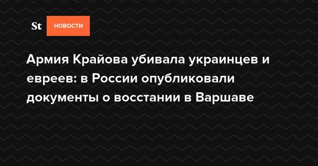 Армия Крайова (АК), организатор Варшавского восстания в 1944 году, убивала украинцев и евреев, а также брала в заложники советских офицеров, сбежавших из фашистского плена, говорится в архивных документах, опубликованных Минобороны РФ. Также военные бумаги дают основания предполагать, что сопротивление могло быть саботировано изнутри собственными командирами, отметили в ведомстве.