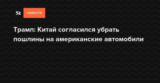 Президент США Дональд Трамп сообщил в своем Twitter, что Китай согласился «снизить и убрать» заградительные пошлины на автомобили из США. По его словам, ограничительный тариф со стороны Пекина составляет 40%.