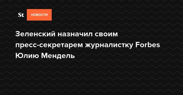 Президент Украины Владимир Зеленский назначил своим пресс-секретарем журналистку Юлию Мендель, говорится в указе на сайте главы государства. По информации СМИ, Мендель сотрудничала с украинским изданием Forbes, а также американской газетой The New York Times.