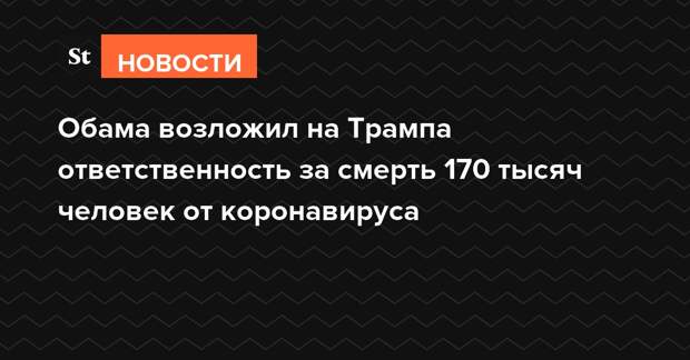Бывший президент США Барак Обама возложил ответственность за смерть 170 тысяч жителей Соединенных Штатов, заразившихся коронавирусом, на нынешнего главу Белого дома Дональда Трампа. Обама сравнил президентство Трампа с реалити-шоу.