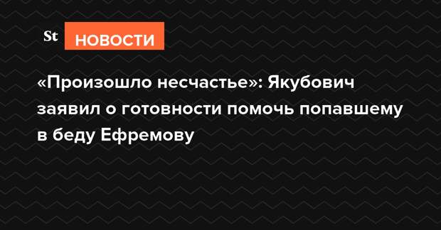 Дочь Ефремова Анна-Мария раскритиковала в соцсетях отца за пьяную езду, заявив, что готова «носить передачки» в тюрьму, если актер окажется за решеткой.«Значит несчастье [произошло]. Если потребуется моя помощь, он [Ефремов] мне скажет. Тогда я помогу, – сказал Якубович.