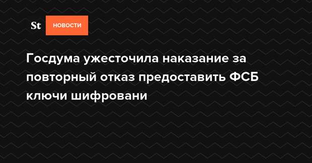 Госдума приняла в третьем и окончательном чтении закон, увеличивающий размер штрафов за повторный отказ операторов связи передать ФСБ (Федеральная служба безопасности) ключи шифрования.