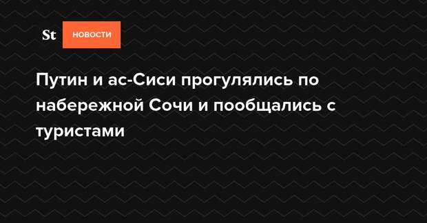 Президент России Владимир Путин и его египетский коллега Абдель Фаттах ас-Сиси перед переговорами в Сочи прогулялись по городской набережной и поужинали в одном из ресторанов. Во время прогулки Путин поговорил с отдыхающими и спросил, как им нравится в Сочи.