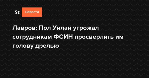 Министр иностранных дел РФ Сергей Лавров рассказал, что арестованный в России по подозрению в шпионаже американец Пол Уилан ведет себя по отношению к сотрудникам ФСИН очень вызывающе: например, угрожает просверлить им голову дрелью.