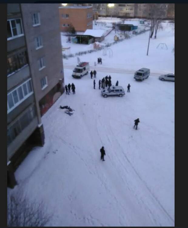 По информации местных жителей, возле многоэтажки нашли тела родственников — женщины, ее матери и девочки, которой около девяти лет.Пользователи в соцсети «ВКонтакте» разместили фотографии, на которых запечатлены три тела на снегу и машины экстренных служб.