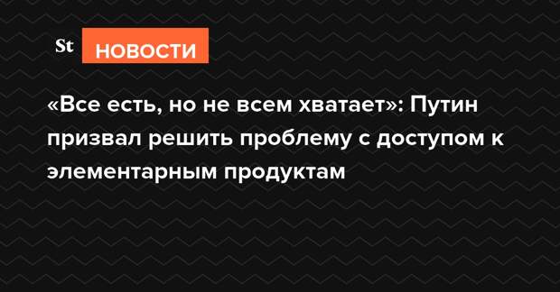 Президент России Владимир Путин на совещании с министром сельского хозяйства Дмитрием Патрушевым указал на нехватку у многих россиян денег на покупку в том числе элементарных продуктов питания. Президент напомнил, что в СССР был дефицит, однако сейчас проблема с нормальным доступом к продовольствию сохраняется, но в другой, капиталистической форме.