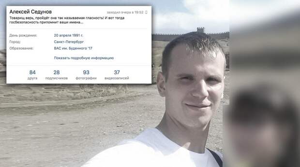 Последний, кого удалось найти в социальных сетях, — Алексей Седунов. Парень 1991 года рождения, окончил Военную академию связи имени Буденного в Санкт-Петербурге. Две последние записи на его странице опубликованы 11 августа — видео со свадьбы друзей. Следующий, ранний пост, датирован уже 2017 годом. Одна из публикаций — фотография торта — поздравление от мамы и жены. На торте надпись: «Больших звезд на погонах! Мы тебя очень любим!» — сам торт изготовлен в виде белой рубашки с галстуком и звездами на погонах.