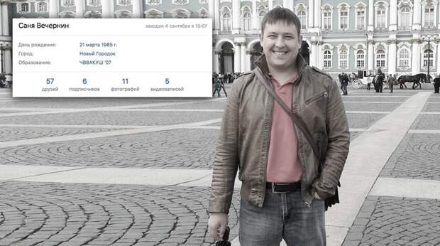Александр Вечернин, 1985 года рождения, окончил Челябинское высшее военное авиационное краснознаменное училище штурманов (ЧВВАКУШ). На сайте учебного заведения отмечено, что это единственный российский вуз, готовящий офицеров-штурманов. Последняя запись на стене — просьба прислать номер телефона некоего отца Николая из церкви Александра Невского. На странице Александра Вечернина указано, что он жил в подмосковном Новом Городке. В своем профиле военный писал нечасто, более ранняя запись датируется 2016 годом. Судя по видеозаписям и подпискам, увлекался спортом — кроссфитом.