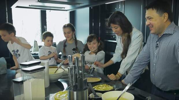 «Мы гуляем в парке, посещаем магазины детских игрушек — все как у обычных людей», — рассказывает отец шестерых детей журналисту федерального телеканала, с которым они не спеша прогуливаются на велосипедах. В какой-то момент губернатор прерывает речь, чтобы поздороваться с местными жителями. Потом его показывают дома с семьей: супруга печет блины, Воробьев говорит о дочках и с легкой укоризной замечает, что одна из них впервые получила двойку.