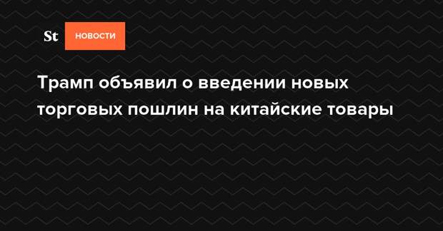 Президент США Дональд Трамп объявил о введении с 24 сентября новых заградительных пошлин на товары из Китая на сумму 200 миллиардов долларов. До конца текущего года тарифная ставка будет составлять 10%, а с 1 января 2019 года она будет увеличена до 25%.