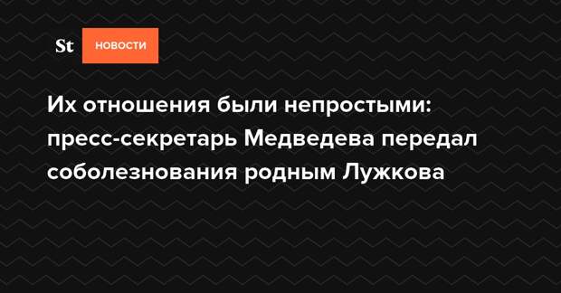 Премьер-министр России Дмитрий Медведев выразил соболезнования в связи со смертью бывшего мэра Москвы Юрия Лужкова, сообщил пресс-секретарь главы кабмина Олег Осипов. Он также напомнил, что у Медведева были «не самые простые отношения» с Лужковым и что тот возглавлял столицу «в самый сложный период».