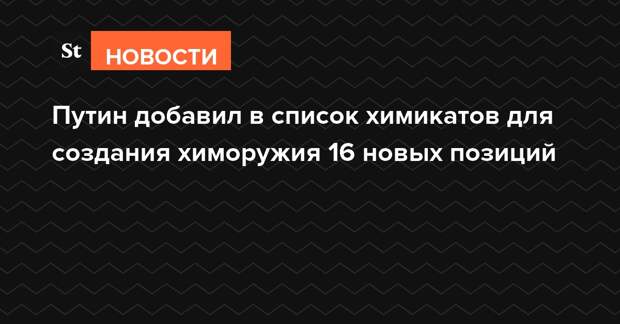 Президент России Владимир Путин внес в список химикатов, оборудования и технологий, которые могут использоваться при создании химического оружия и в отношении которых установлен экспортный контроль, 16 новых позиций. Об этом говорится в указе главы государства, опубликованном на портале правовой информации.
