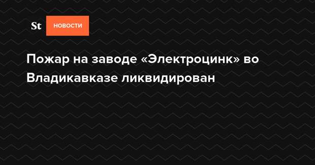 Пожар, начавшийся в ночь на 21 октября на заводе «Электроцинк» во Владикавказе, ликвидирован. Пожарные потушили возгорание за 12 часов — предположительно, пожар начался в 03:40-03:50 мск, об успешном тушении сообщили в 15:33 мск. В связи с инцидентом глава региона Вячеслав Битаров заявил, что режим ЧС вводить необязательно.