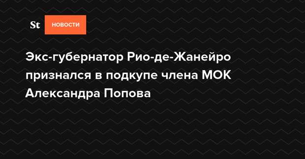 Обвиняемый в коррупции бывший губернатор Рио-де-Жанейро Сержио Кабрал на судебном заседании заявил, что в 2009 году дал взятку ряду членов Международного олимпийского комитета (МОК) за голоса в пользу Рио при выборе места проведения летних Олимпийских игр 2016 года.