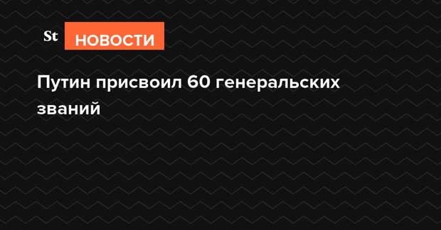 Президент РФ Владимир Путин присвоил 60 очередных и первых генеральских званий сотрудникам МЧС, МВД, ФСИН, ФССП, Росгвардии, Следственного комитета (СК) и Федеральной таможенной службы (ФТС). В частности, повышения получили замглавы Росгвардии Олег Плохой, официальный представитель МВД Ирина Волк и замначальника ГИБДД России Олег Понарьин.