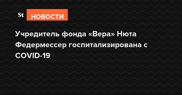 Тесты на COVID-19 учредителя фонда помощи хосписам «Вера» Нюты Федермессер показали положительный результат. Об этом она сообщила на своей странице в Facebook. Помимо этого, у нее выявлена начальная стадия двусторонней пневмонии и врачи решили подержать ее несколько дней в больнице в Коммунарке.