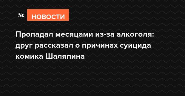 Стендап-комик и актер Александр Шаляпин покончил с собой в Москве из-за пристрастия к спиртному, которое мешало развиваться его карьере. Такое мнение выразил друг Шаляпина. По его словам, комик находился в творческом кризисе.
