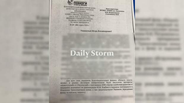 Как рассказала Daily Storm Бахметьева, ее собеседница тогда заявила, что сам Михаил Каабак сообщил ей: купленные фондом лекарства ее дочери не понадобились.