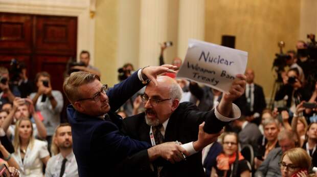 На пресс-конференции корреспондент The Nation хотел привлечь внимание к Международной кампании по ликвидации ядерного оружия, организации, которая в 2017 году получила Нобелевскую премию, добившись одобрения своих инициатив от сотен государств ООН. По мнению Хассани, СМИ преступно мало рассказывали про этих активистов — как в США, так и в России. Эти две главные ядерные державы еще 50 лет назад подписали договор о нераспространении оружия массового поражения и пообещали в итоге окончательно от него избавиться. Теперь же страны используют ЯО как средство для угрозы расправой и рэкета, уверен Хассани.