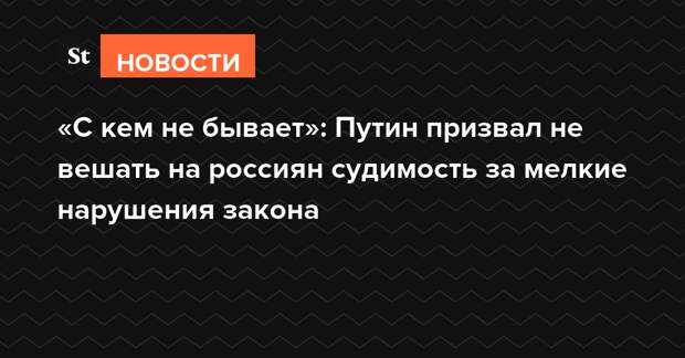 «Нам, конечно, не нужно на людей вешать судимость и все, что с этим связано. То что тащится потом с человеком по жизни. Если речь идет о каких-то мелких правонарушениях, ну с кем не бывает. Жизнь есть жизнь, — сказал Путин. — Не нужно загонять человека в такие жесткие рамки, которые будут влиять на всю оставшуюся жизнь».