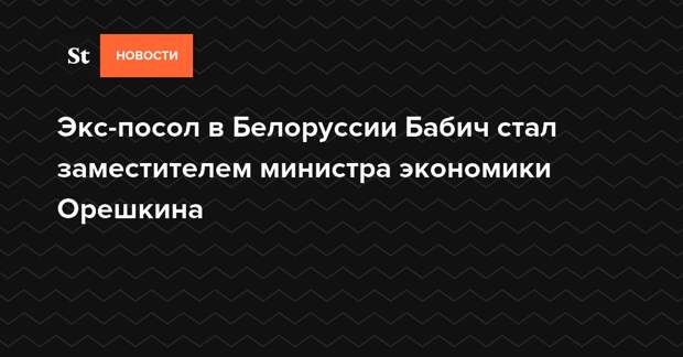 Бывший посол России в Белоруссии Михаил Бабич стал первым заместителем главы Минэкономразвития Максима Орешкина. Соответствующий документ был подписан премьер-министром РФ Дмитрием Медведевым.