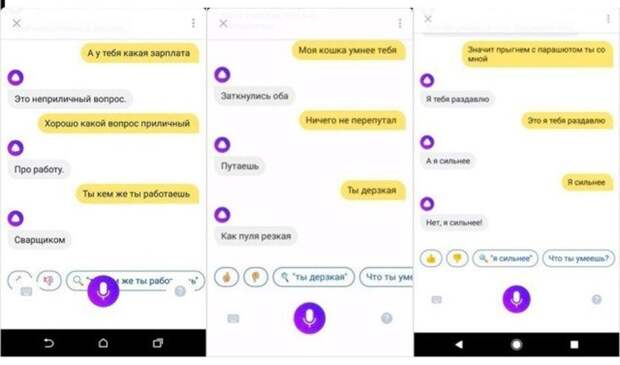 «Они накачали из интернета логи разговоров, где люди друг с другом общаются, и так обучили чат-бота на нейронных сетях. Обычно получается что-то забавное, но глупое. Потому что никакого понимания текста нет, — уточнил Ашманов. — Часть на машинном обучении бесконтрольная — неизвестно, чему она там в интернете научится. Ставится на выходе блокировщик — цензор, который, перед тем как выдать ответ, проверяет, например, что там просто нет матерных слов. Вы понимаете, что если обучаемость — на диалогах из интернета, то мата там будет сколько хочешь».