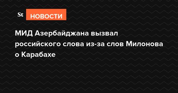 МИД Азербайджана вызвал к себе российского дипломата из-за высказываний депутата Госдумы Виталия Милонова в адрес азербайджанцев и Нагорного Карабаха.