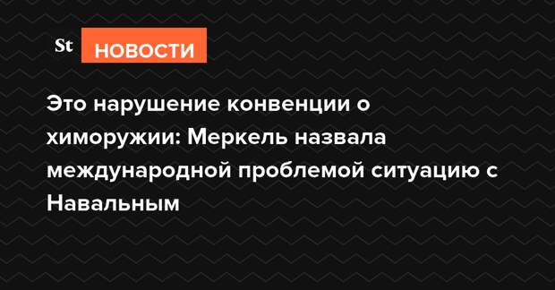 Канцлер Германии Ангела Меркель заявила, что на территории России против оппозиционера Алексея Навального было применено боевое отравляющее вещество, что является нарушением конвенции о запрещении химоружия. Организации по запрещению химоружия (ОЗХО) должна составить свое заключение по этому преступлению, отметила фрау канцлер.
