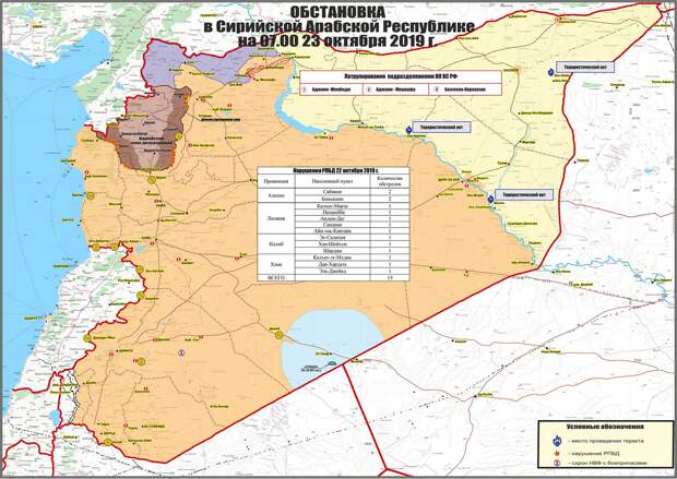 Согласно опубликованной на сайте ведомства карте, военные России и Турции будут проводить патрулирование в зоне до 10 километров от сирийско-турецкой границы. Также на карте указаны, кроме постов сирийских пограничников, зона отвода курдских вооруженных сил и границы приостановленной операции «Источник мира».