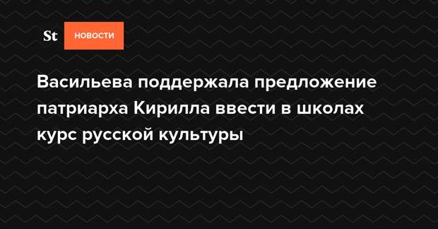 Министр просвещения России Ольга Васильева поддержала предложение Патриарха Московского и всея Руси Кирилла ввести курс по русской культуре в школах. Васильева добавила, что такую дисциплину нужно преподавать и в высших учебных заведениях России.