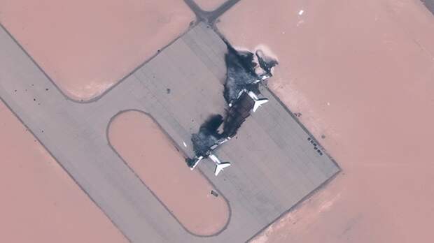 Фотографии уничтоженных двух украинских транспортников на своем сайте опубликовала компания European Space Imaging. На кадрах видны два разрушенных самолета. Кроме того, был опубликован снимок авиабазы Эль-Джуфра, по которой был нанесен воздушный удар.