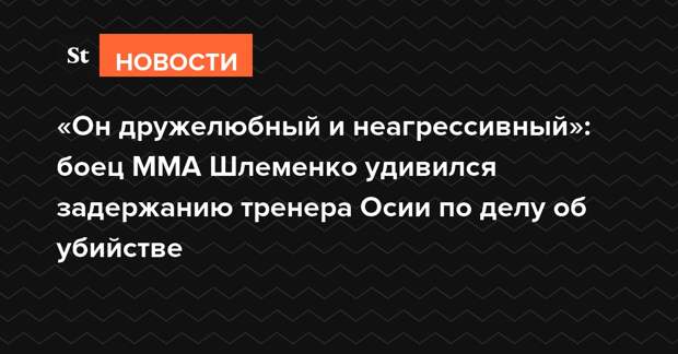Боец смешанных единоборств Александр Шлеменко признался, что удивлен задержанию заслуженного тренера России по ММА Владимира Осии, которого подозревают в организации заказного убийства.