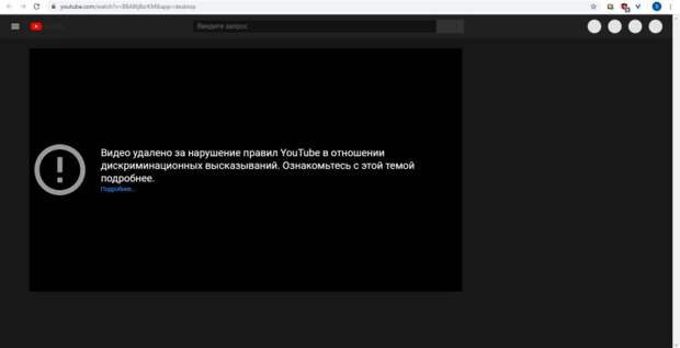 Сейчас на странице с записью указано, что она нарушает правила, поскольку видео содержит дискриминационные высказывания.