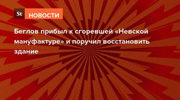 Губернатор Санкт-Петербурга Александр Беглов прибыл к зданию «Невской мануфактуры», где 12 апреля произошел мощный пожар. Глава Северной столицы заявил, что уничтоженный огнем объект должен быть восстановлен.