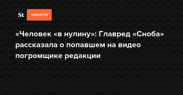 Неизвестный «крайне неадекватный молодой человек «в нулину» разгромил офис издания «Сноб», сообщила Daily Storm его главный редактор Ксения Чудинова, посмотревшая видеозапись погрома. По ее словам, на записи видно, что погромщик сначала вынес один из редакционных ноутбуков, но потом оставил его на улице.