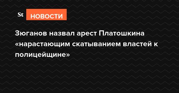Арест лидера движения «За новый социализм» Николая Платошкина вызван «нарастающим скатыванием властей к полицейщине» и стремлением заткнуть «рот любым проявлением недовольства», заявил лидер КПРФ Геннадий Зюганов.