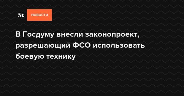В Госдуму внесли законопроект, разрешающий сотрудникам Федеральной службы охраны (ФСО) использовать боевую технику и любые подручные средства при необходимости, включая транспортные.