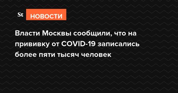 Мэр Москвы Сергей Собянин сообщил, что в первые пять часов после того, как стало возможно получить прививку от COVID-19, на прием к врачу записались пять тысяч человек. Ранее заммэра по вопросам соцразвития Анастасия Ракова сообщила, что в Москве развернуты 70 центров вакцинации, число которых планируется увеличить до 170.