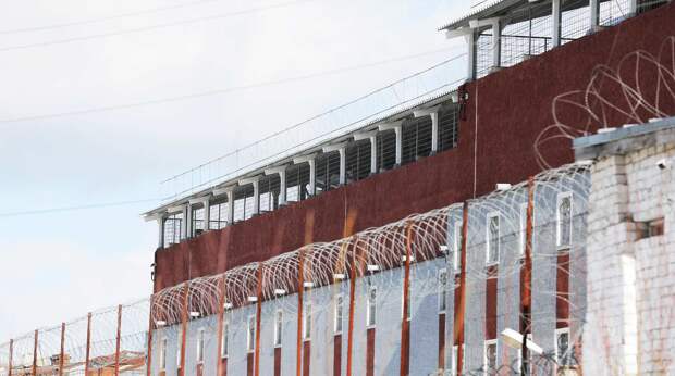 Изолятор окружен забором высотой в несколько метров. Лучше всего из-за него было видно здание, выкрашенное в серый и красные цвета. Это новый блок, построенный в 2017 году. Верхний этаж этого здания оборудован под прогулочную зону. Там находятся дворики для сидельцев с турниками, про которые рассказывал Алексей Навальный. Над верхним этажом нет крыши, но установлен навес.