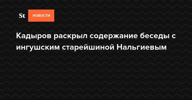 Старейшина Мухажир Нальгиев выслушал точку зрения руководителя соседней с Ингушетией республики и попросил у него прощения за резкие высказывания, которые касались чеченского лидера. Об этом в своем Telegram-канале написал сам Кадыров.