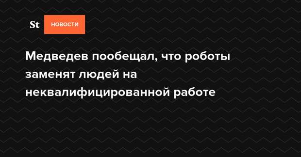 Премьер-министр России Дмитрий Медведев в ходе выступления на форуме «Открытые инновации» призвал готовить специалистов по обучению и обслуживанию роботов, которые в будущем заменят людей на неквалифицированных рабочих местах.