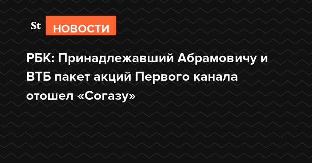 Пакет в 20% Первого канала, который раньше принадлежал бизнесмену Роману Абрамовичу, а затем ВТБ, теперь отошел страховой компании «Согаз». Об этом сообщает РБК со ссылкой на источники. Ранее президент России Владимир Путин обязал правительство обеспечить приватизацию федерального телеканала, чтобы вывести его из кризиса.
