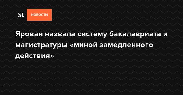 Депутат выразила мнение, что использование западного стандарта в вузах является «миной замедленного действия», поскольку есть множество рабочих мест, на которые бакалавров не берут, и магистратура становится де-факто обязательной.«Слова «бакалавр» и «магистр» впервые появились в законе об образовании в 1996 году, когда «все копировалось под Запад без понимания: зачем, почему. Эта вся система — она против интересов и экономики, и человека. Вопрос только в том, кто в этом готов признаться из профильных министерств», — заявила Яровая на заседании президиума Совета законодателей.