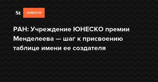 Ученый уточнил, что предложение об учреждении ЮНЕСКО премии имени Дмитрия Менделеева в области фундаментальных наук было выдвинуто премьер-министром России Дмитрием Медведевым и президентом РАН Александром Сергеевым во время заседания организационных комитетов.